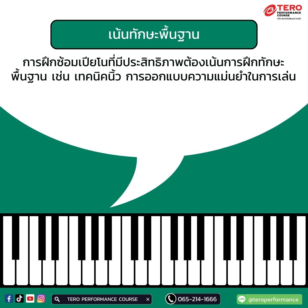 การฝึกซ้อมเปียโนที่มีประสิทธิภาพต้องเน้นการฝึกทักษะพื้นฐาน เช่น เทคนิคนิ้ว การออกแบบความแม่นยำในการเล่น